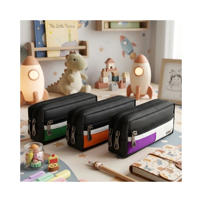 The Cyma Pro Triple Chain Pouch is designed for convenience, durability, and everyday functionality. Crafted with high-quality materials, this pouch offers a sleek and compact design that easily fits your essentials while maintaining a stylish look. The smooth single-chain zipper ensures easy access and secure storage, making it ideal for carrying stationery, toiletries, cosmetics, or small accessories.