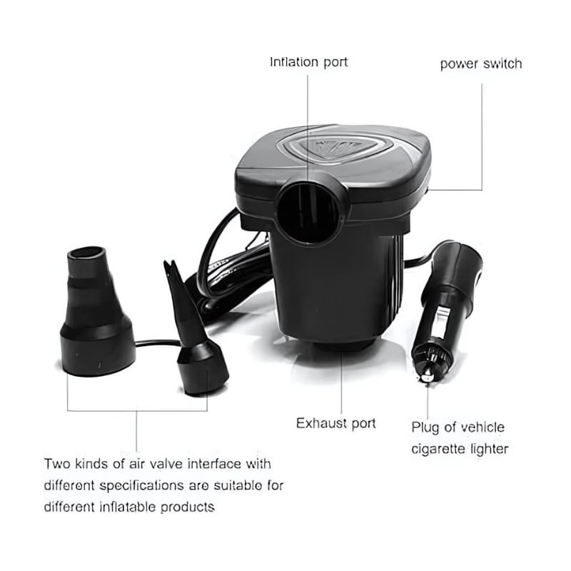• Fast Inflation: Quickly inflates air mattresses, pool toys, and tires