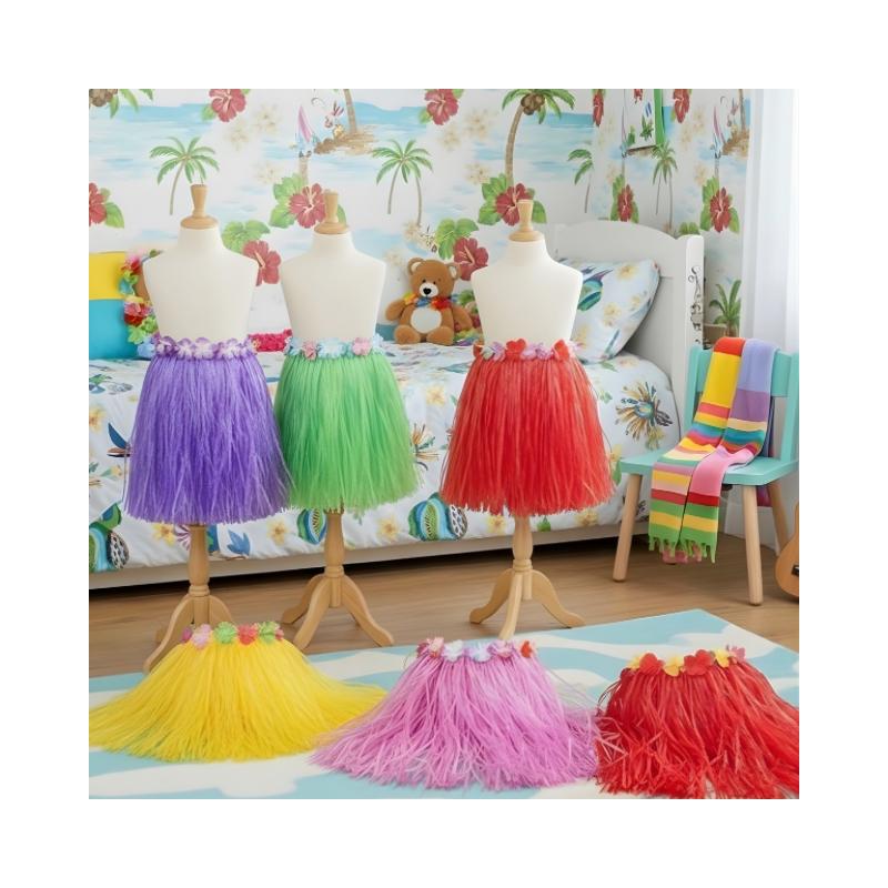 Colorful Hawaii skirt for kids and adults. Lightweight, comfortable, and fun—perfect for beach parties, theme events, dance performances, and fancy-dress celebrations. Made from lightweight, soft synthetic grass material, the skirt is comfortable to wear and allows easy movement for dancing and fun activities. The elastic waistband ensures a secure and flexible fit, making it suitable for kids and adults alike.