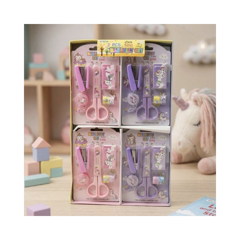 Mini Stationery Set is a cute and practical collection of essential school supplies designed especially for kids. This adorable set includes small stationery items such as scissors, a mini stapler, tape, and other useful accessories, all neatly packed in a colorful themed package. Featuring charming cartoon characters and soft pastel colors, the set makes everyday school tasks more fun and enjoyable. Its compact size makes it easy for children to carry in their school bags or pencil cases, while keeping their stationery organized. Perfect for school, art activities, or creative projects, this mini stationery set encourages kids to stay organized while adding a playful touch to their learning experience. It also makes a great gift for students, party favors, or classroom rewards.