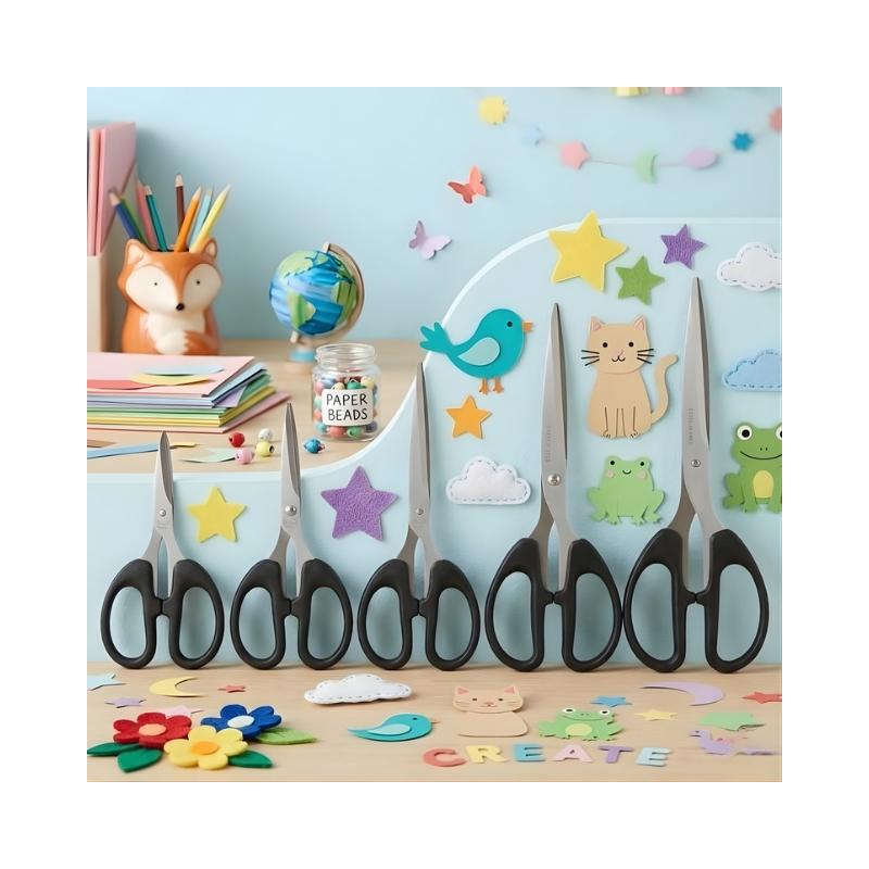 These scissors are designed for smooth, precise cutting across a variety of everyday tasks. Featuring sharp stainless steel blades, they provide clean and accurate cuts on paper, cardboard, fabric, and more. The ergonomically designed handles offer a comfortable grip, reducing hand strain during extended use. Built with durable materials, these scissors ensure long-lasting performance and reliability.