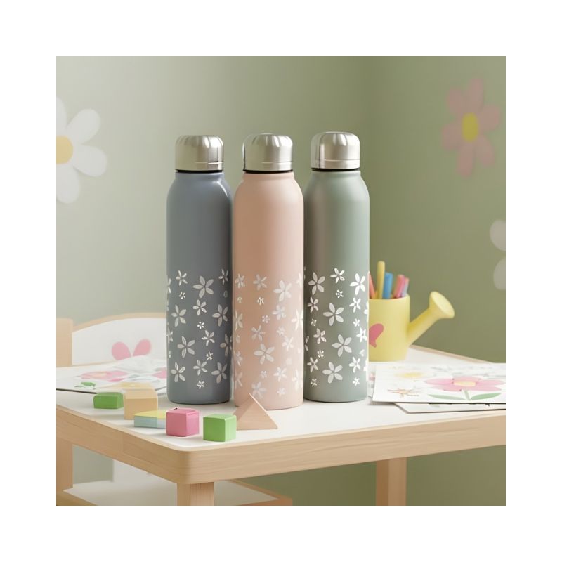 This colorful single wall steel bottle is designed to add fun and functionality to everyday hydration. Featuring playful prints and shades, it is lightweight, easy to carry, and perfect for kids and adults alike. Ideal for school, travel, sports, or daily use, this bottle combines charming style with practical design.