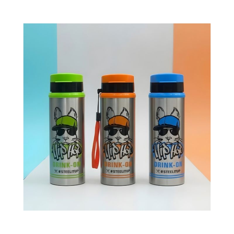 This colorful single wall steel bottle is designed to add fun and functionality to everyday hydration. Featuring playful prints and soft pastel shades, it is lightweight, easy to carry, and perfect for kids and adults alike. Ideal for school, travel, sports, or daily use, this bottle combines charming style with practical design.