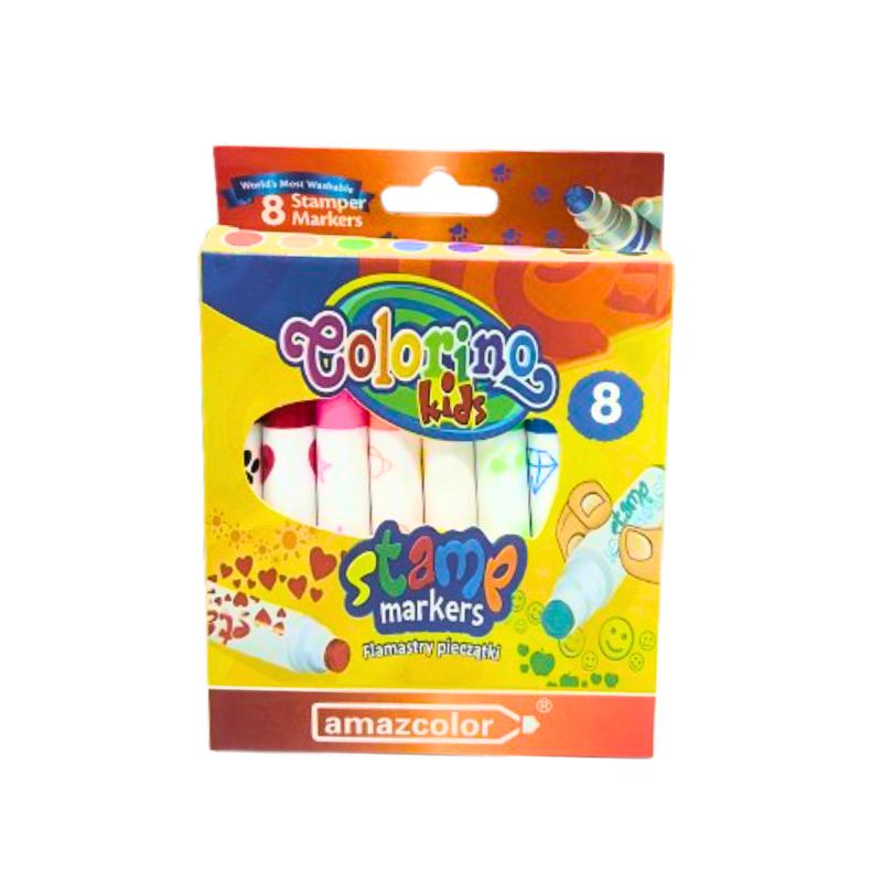 Coloring Kids Stamp Markers are a fun and creative set of 8 washable stamper markers, perfect for children. Each marker features a unique stamp tip for playful patterns like hearts, stars, and smiley faces, making them ideal for decorating, crafting, and learning activities.