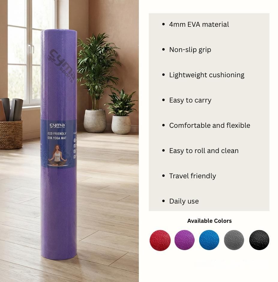 Premium quality EVA yoga mat designed for superior comfort and stability. Provides excellent cushioning and anti-slip grip, making it perfect for yoga, meditation, stretching, and workout sessions at home or in the studio. Lightweight, durable, and easy to carry.