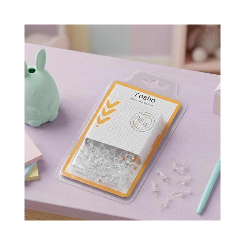 Organize your workspace with clarity and precision using the Yosho Premium Crystal Clear Push Pins. These essential stationery tools feature a sleek, transparent head design that blends seamlessly into any corkboard, map, or office display without distracting from your important notes or photos.